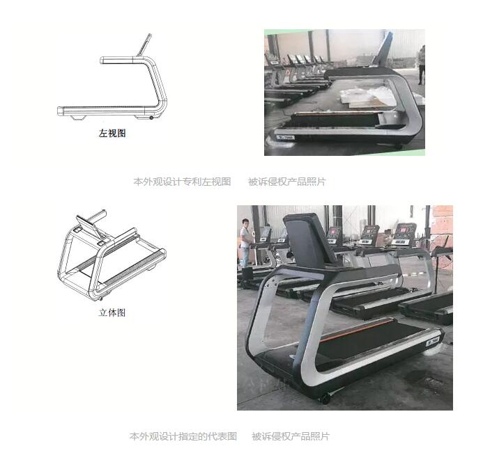 首先,原告提供的国家知识产权局出具的外观设计专利权评价报告显示,“从检索到的现有设计状况可以发现,健身器材类产品中大多包含传送带、支架、扶手和显示面板等的设计,但整体及各部分的形状、表面图案等则有较大的变化,这些变化会对整体视觉效果产生影响”。可见,本专利独特的外观设计带来的整体视觉效果正是吸引消费者购买、并从众多跑步机厂商的竞争中脱颖而出成为跑步机中法拉利的关键。
