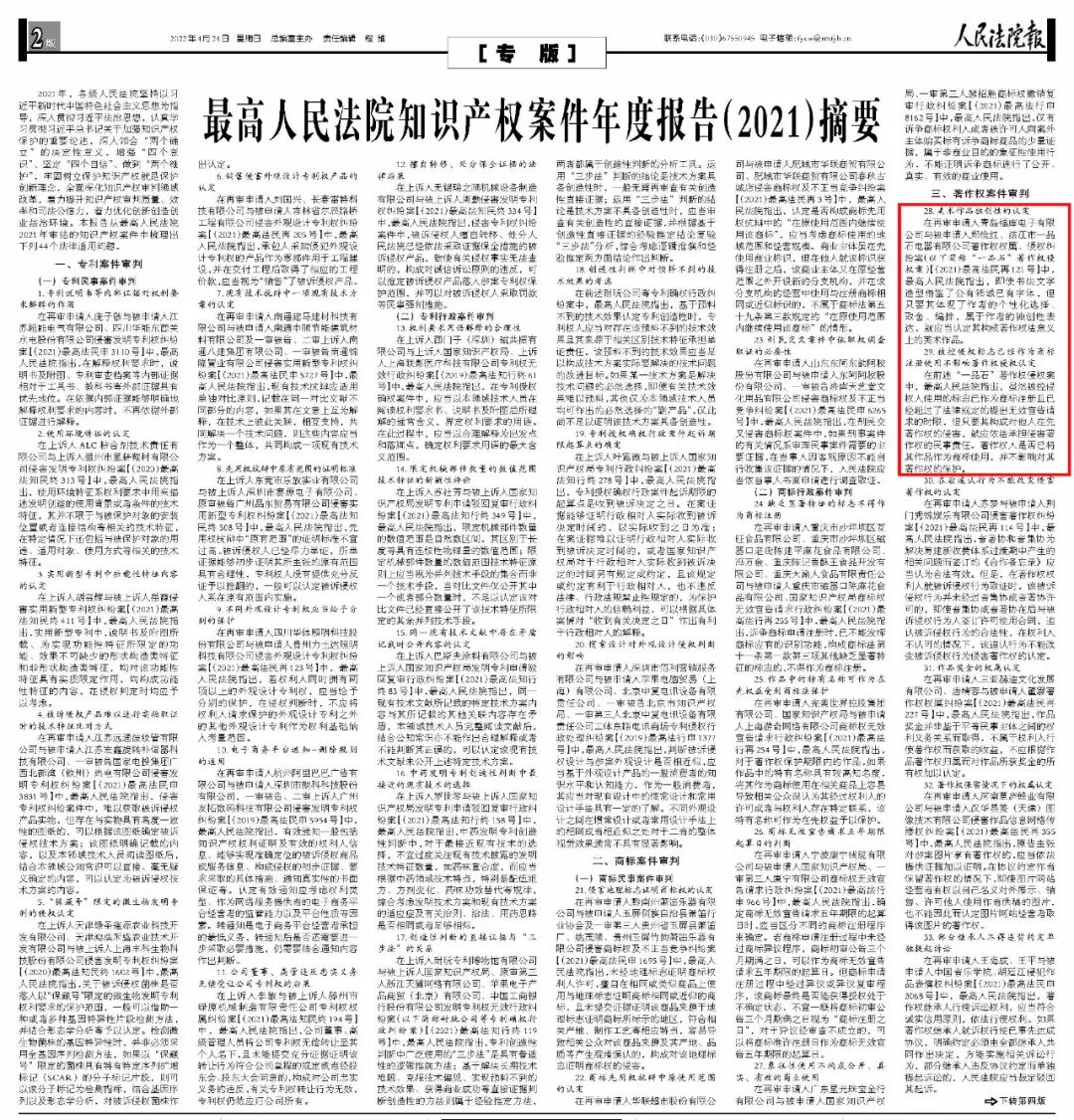 >海星体育直播>关于我们>荣誉概览>2022>集佳代理的“一品石”著作权侵权纠纷案入选《最高人民法院知识产权案件年度报告(2021)摘要》