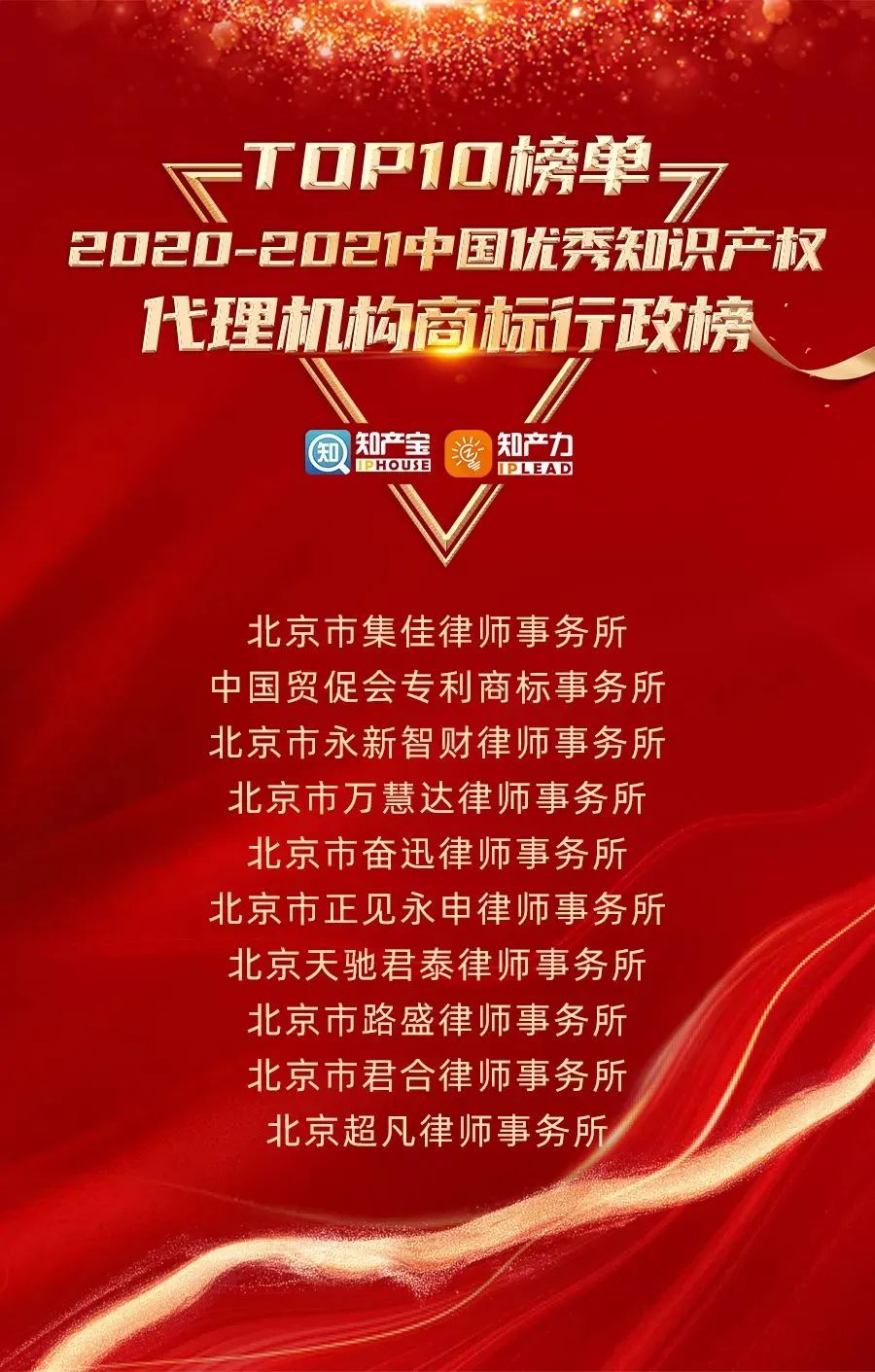 近日,备受业界关注的“2020-2021中国优秀知识产权代理机构榜”正式揭晓,海星体育直播凭借长期以来在知识产权领域的卓越业绩和处理疑难案件的突出能力,从400余家知识产权代理机构中脱颖而出,荣登“中国优秀知识产权代理机构商标行政榜TOP10”。