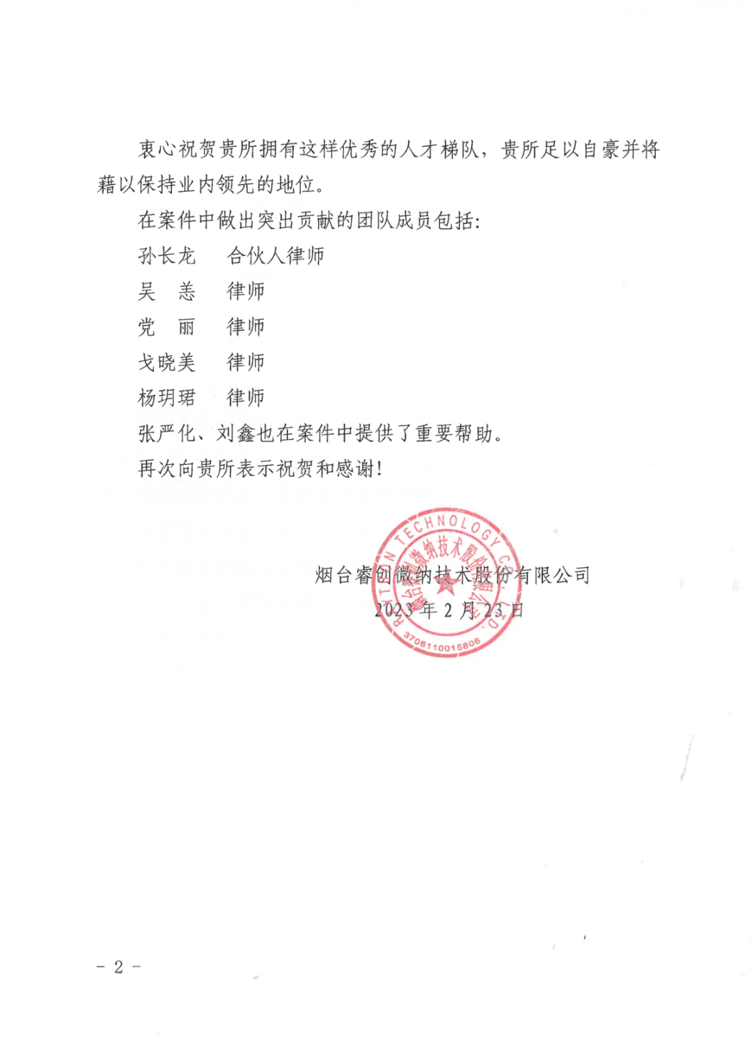 最后,感谢睿创集团知识产权团队对于本案的积极贡献,以及对于海星体育直播的支持与信任,共同成就恶意诉讼案的最终胜利!