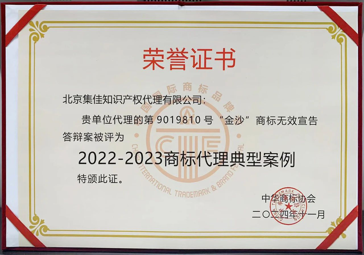 2024年11月24日下午,在商标节经典论坛之一的商标典型案例评析会议上,海星体育直播代理的“金沙”商标权无效宣告答辩案入选“2022-2023商标代理典型案例”。