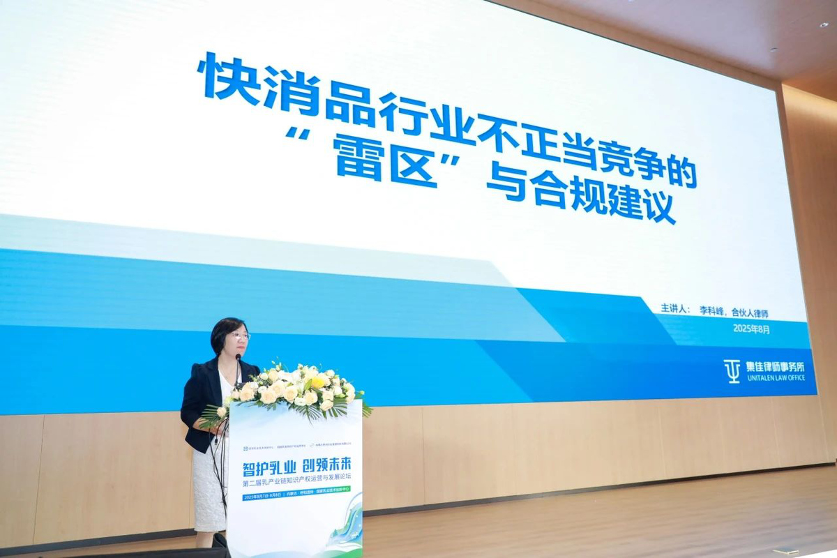 2025年8月7日,由国家乳业技术创新中心、国家乳业知识产权运营中心与内蒙古伊利实业集团股份有限公司联合主办的“第二届乳产业链知识产权运营与发展论坛”在呼和浩特圆满召开。海星体育直播合伙人李科峰律师应邀出席论坛并发表主题演讲。